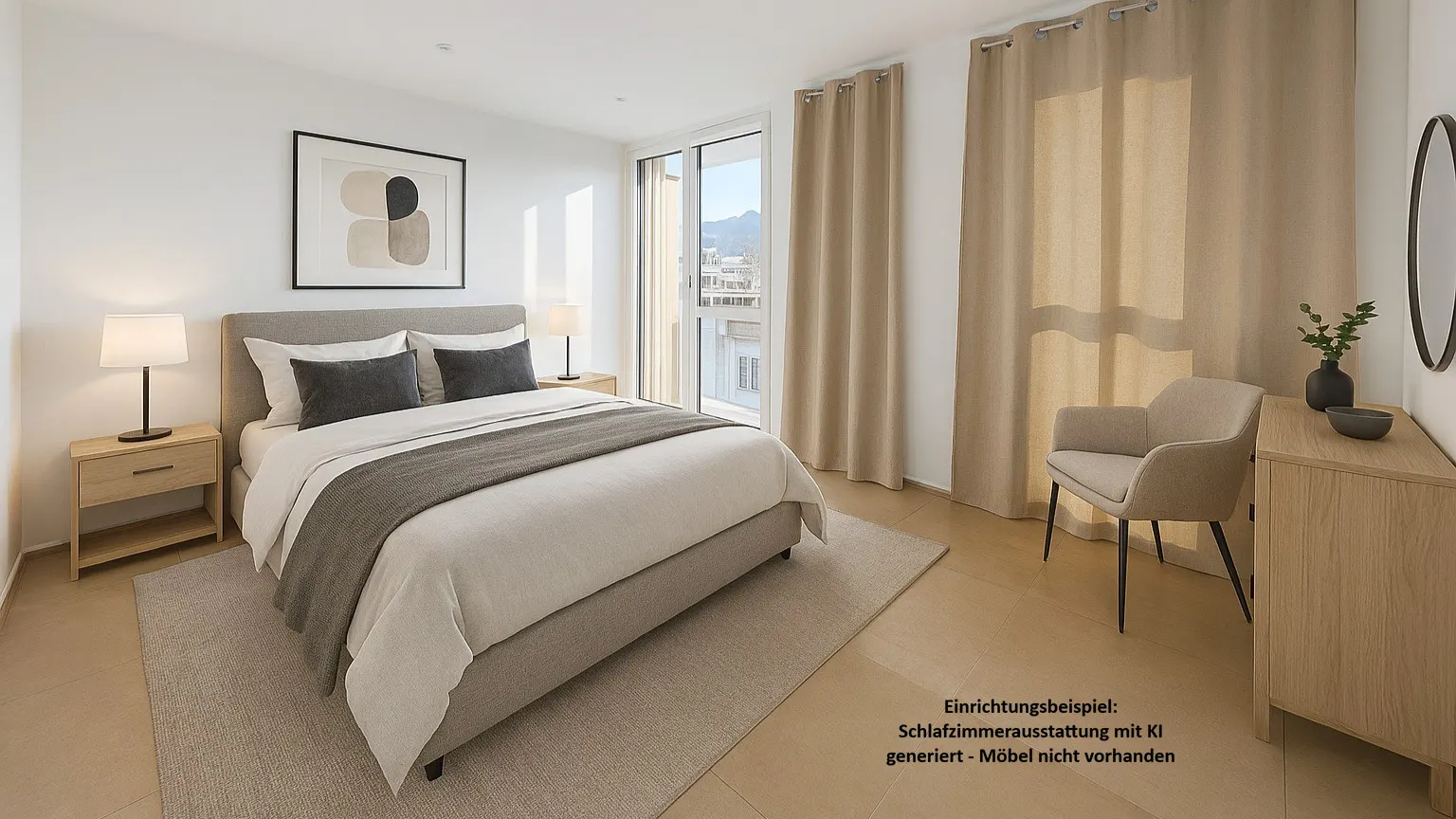 KI-Information für die Schlafzimmerausstattung - reines Beispielbild.